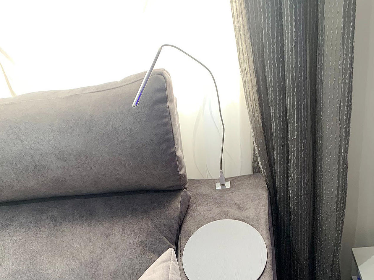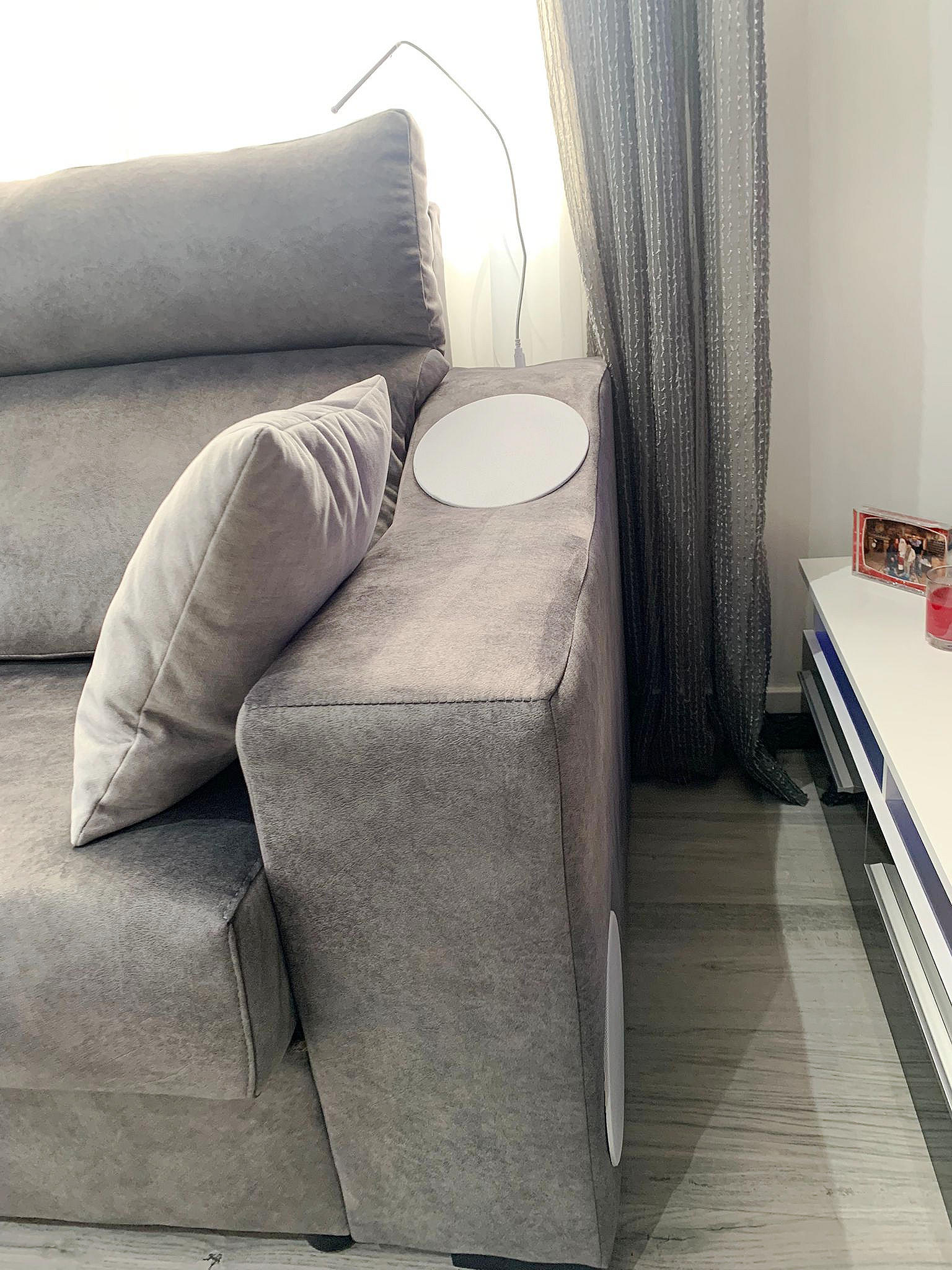 Rinconera en la vivienda del cliente de alta tecnología con sistema de sonido integrado en ambos brazos, control táctil WiFi/Bluetooth para cualquier dispositivo del hogar, cama con apertura sistema italiano y módulos relax motorizados para máximo confort.